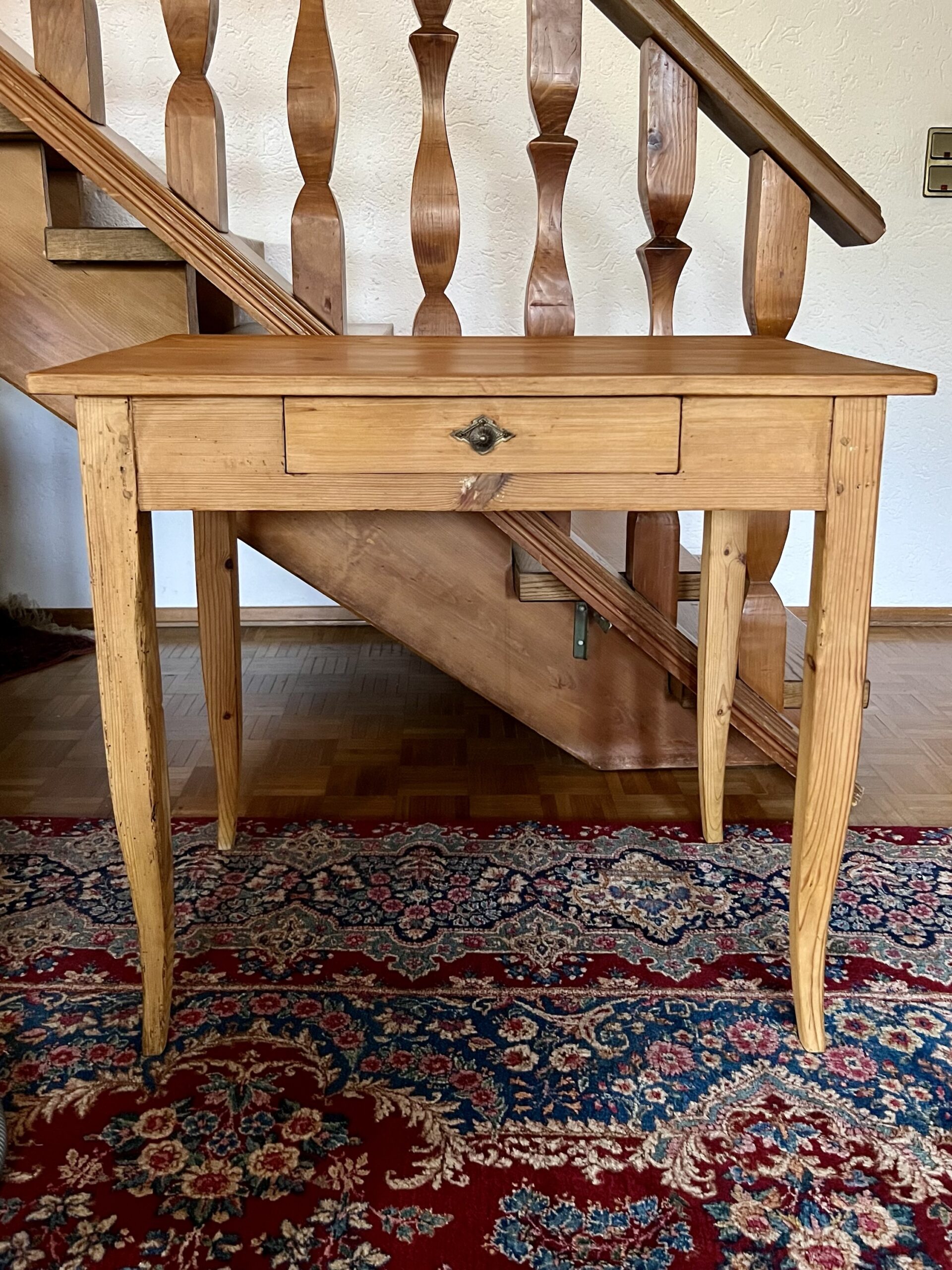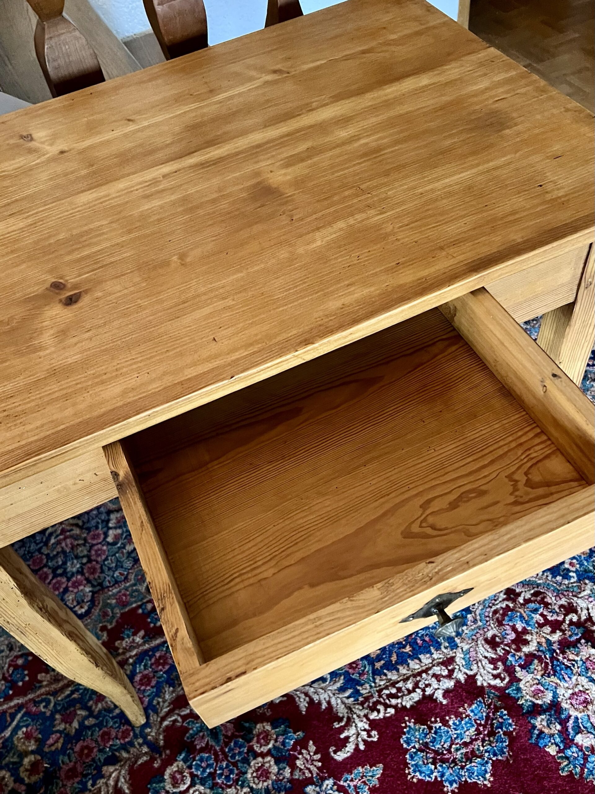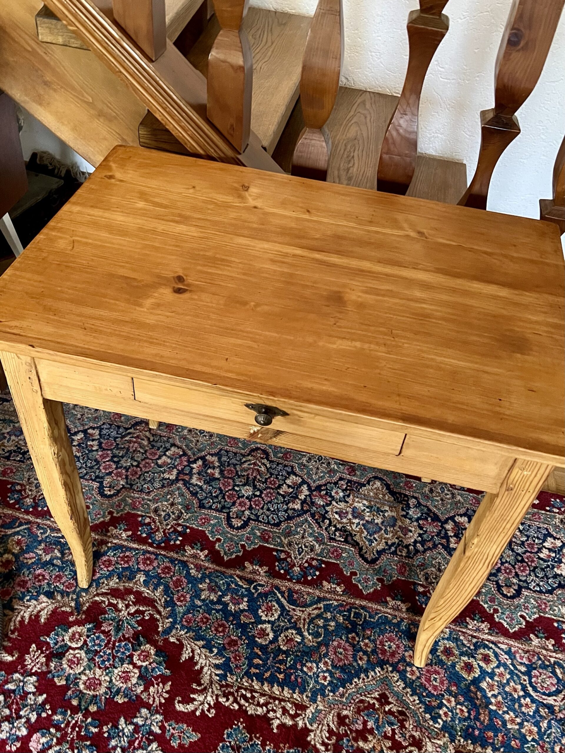 Kleiner Biedermeier-Tisch aus Weichholz, vollständig restauriert, mit praktischem Schubfach.